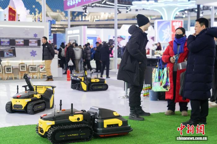 图为冰雪文创产物吸收不雅铺者。中新社记者 赵宇航 摄