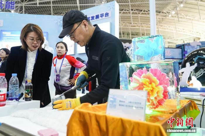 图为冰雪教导铺区,现场雕冰雕吸收不雅铺者。中新社记者 赵宇航 摄