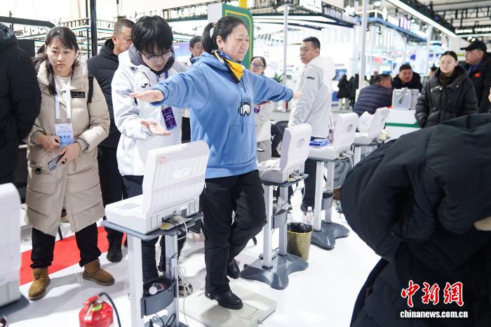 图为不雅铺者正在冰雪互动领悟区尝试肉体谐和本领。中新社记者 赵宇航 摄